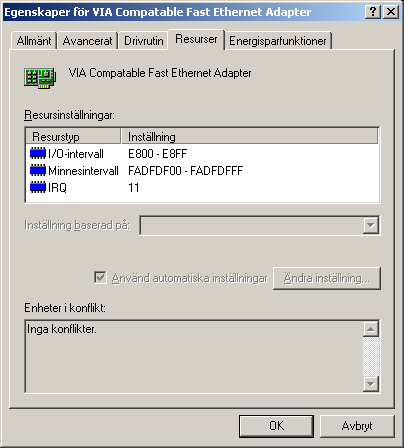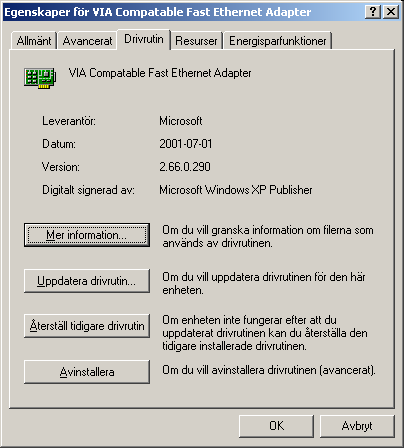 Här syns vilken drivrutin som används för nätverkskortet