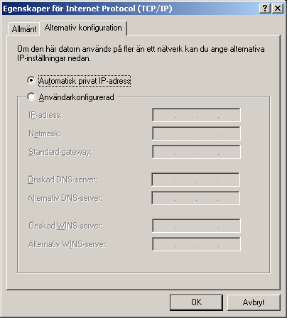 Det är denna inställning som ger dig kontakt mellan två datorer utan DHCP-server