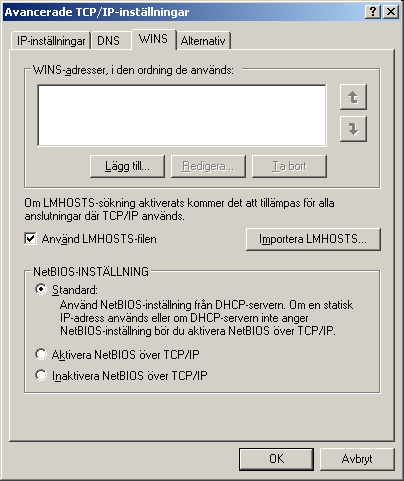 Netbios måste stå i standard annars fungerar inte delade mappar
