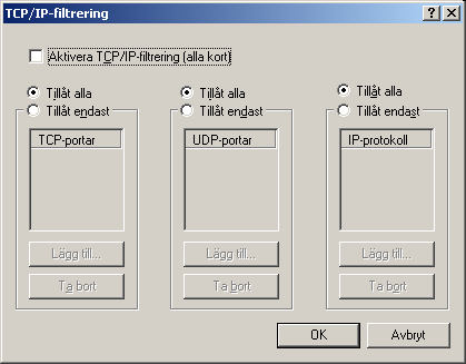 Här finns TCP/IP filter för den som vill pillra med det