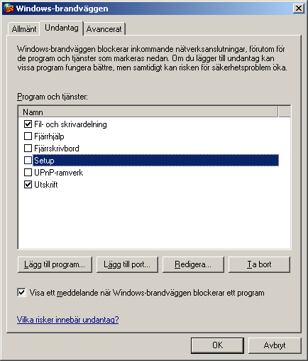 Brandväggen bör vara påslagen för att skydda datorn men för att utdelning av filer ska fungera måste den ställas in