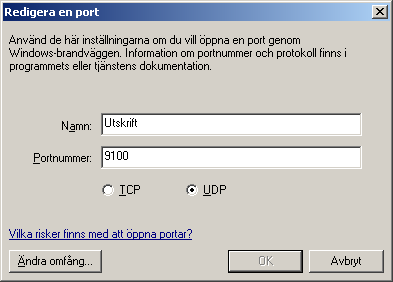 Eftersom jag har en skrivare på nätverket (HP2600n) så måste jag ställa in så här